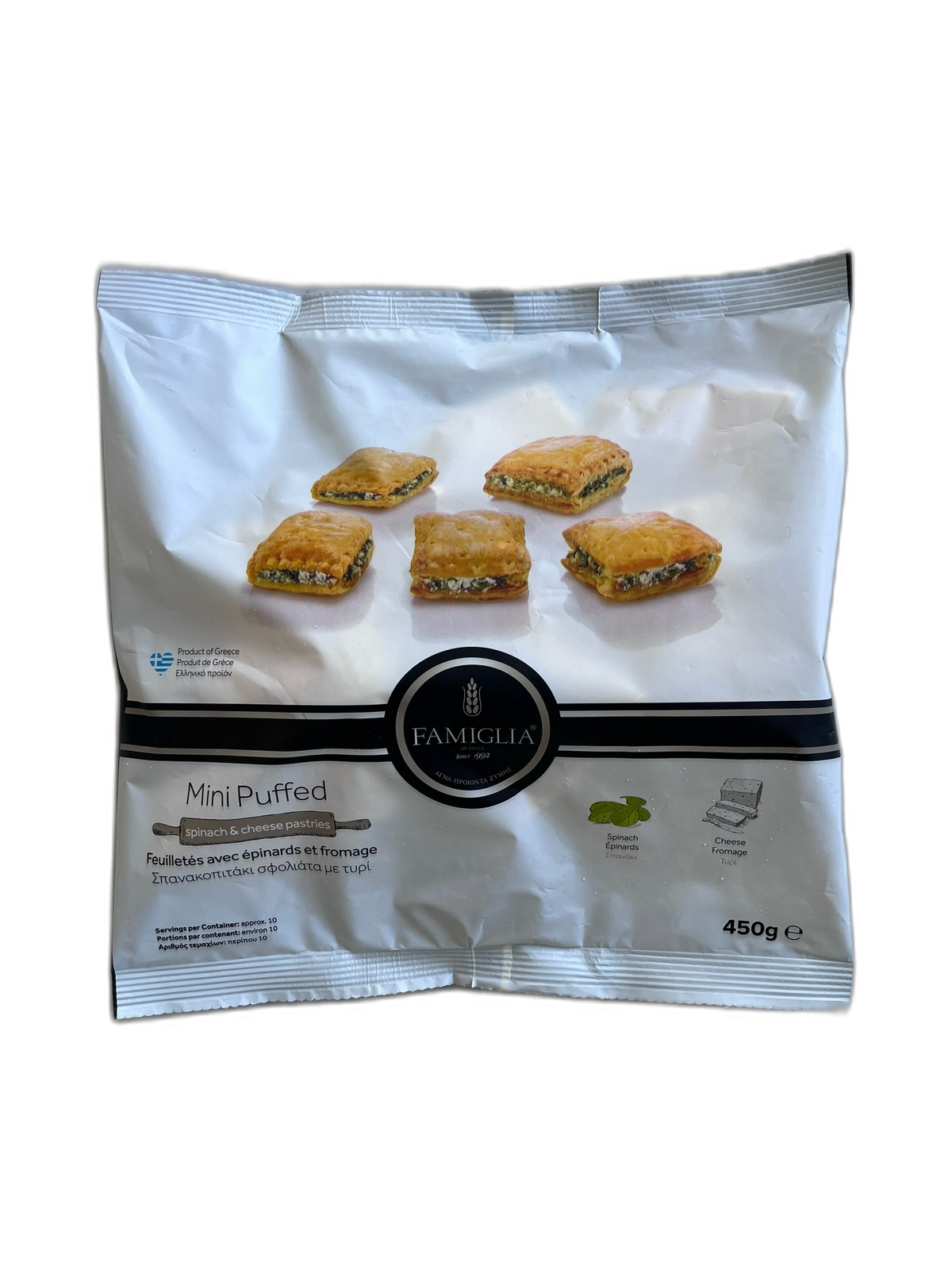 Κατεψυγμένα μίνι σφολιατάκια με γέμιση σπανάκι και τυρί.