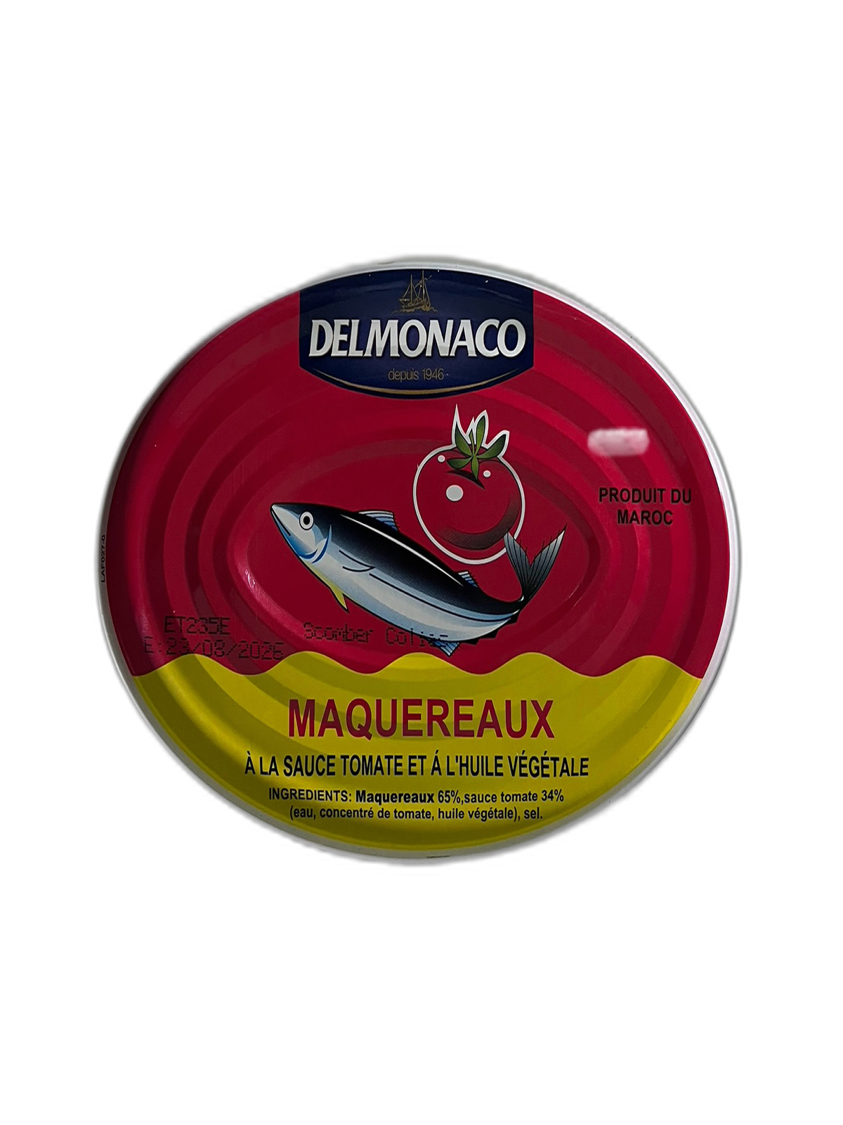 Κονσέρβα σκουμπρί σε σάλτσα τομάτας και φυτικό λάδι.